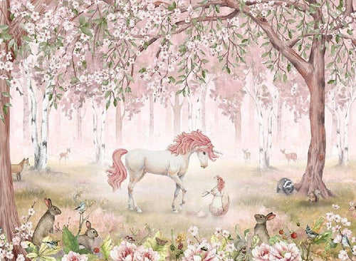 Papier peint licorne féerique rose