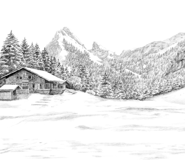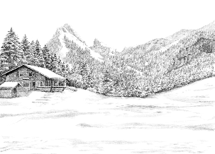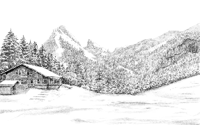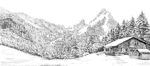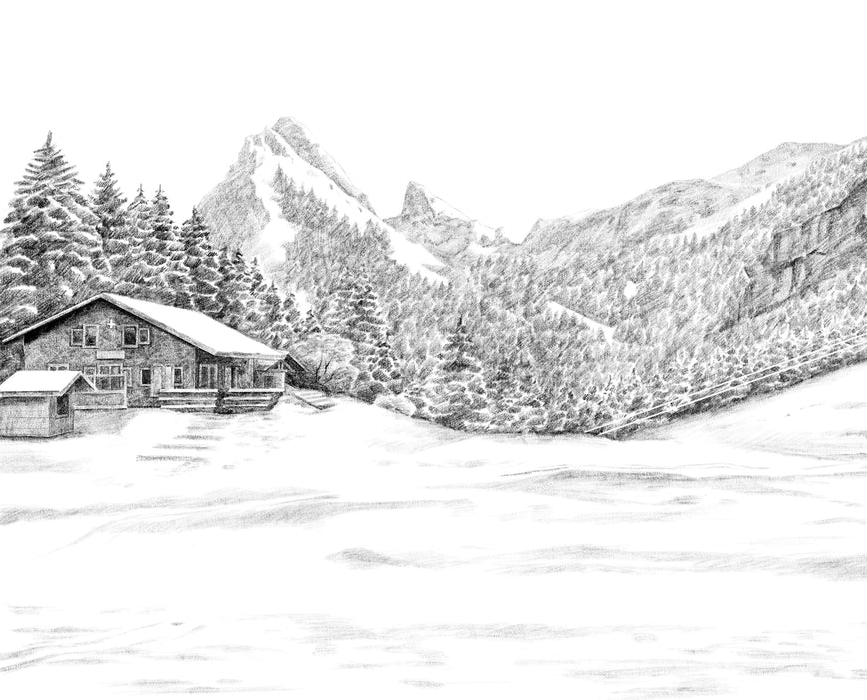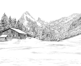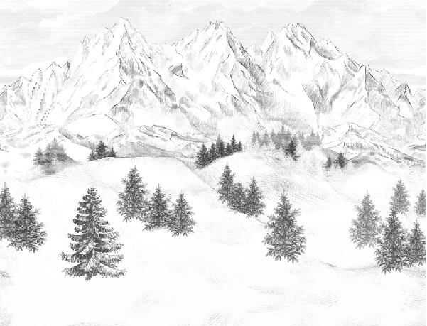 Papier peint montagne télécabine noir & blanc