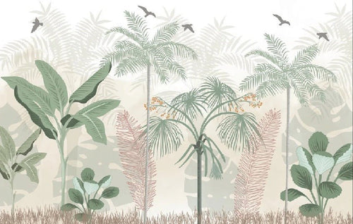 Papier peint panoramique jungle pastel