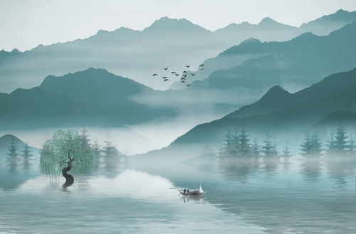 Papier Peint Entre Montagne et Lac - H145cm x L150cm - Matière Softouch