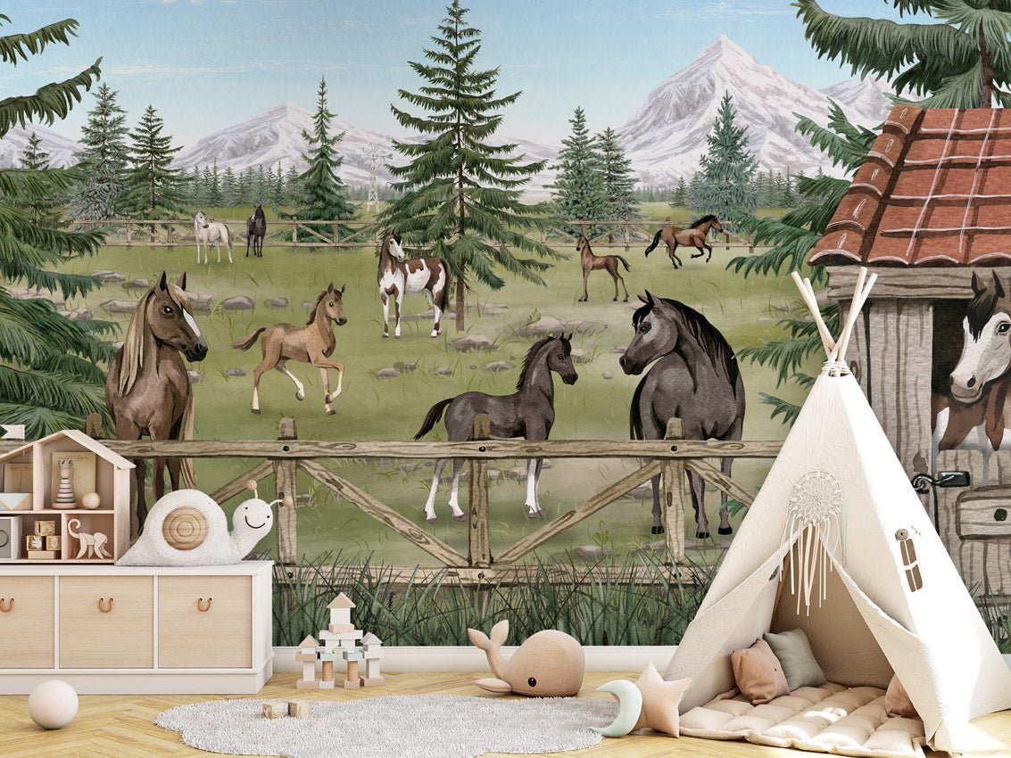 Papier peint chambre enfant - Le havre des chevaux