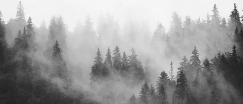 Tapete „Nebelwald“ in Schwarz-Weiß