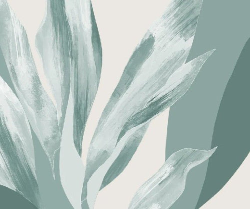 Panorama-Tapete mit floralem Muster in Wassergrün