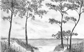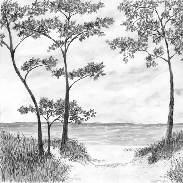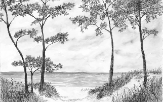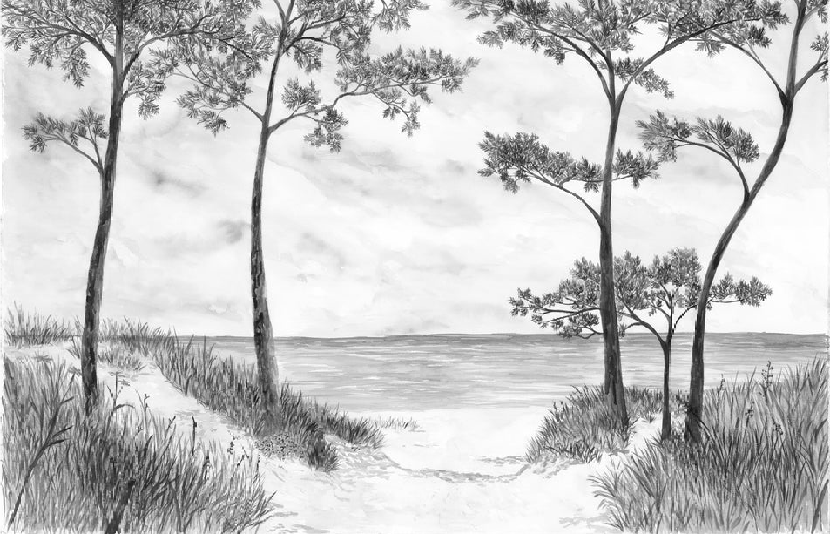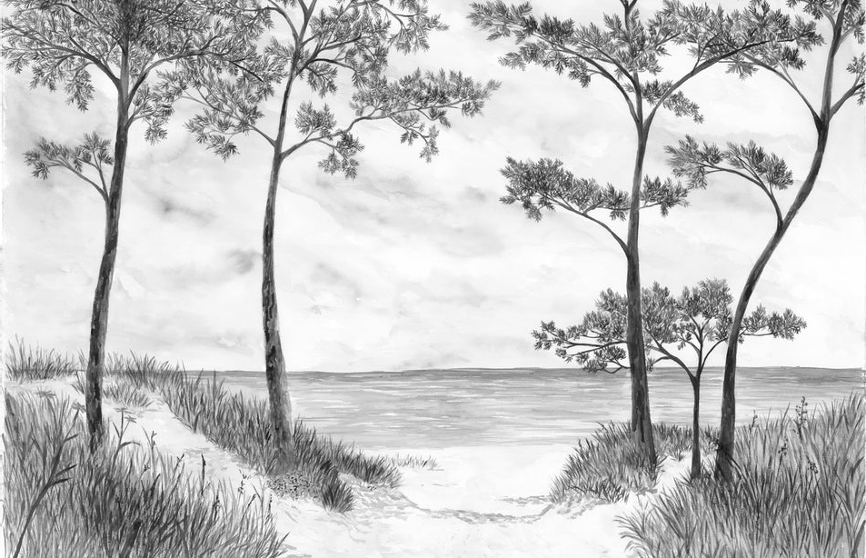Tapete „Küstenkiefern und Dünen“ – Sepia