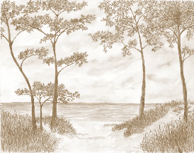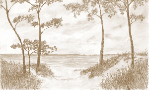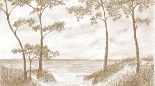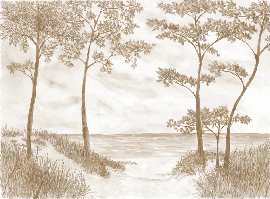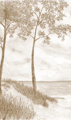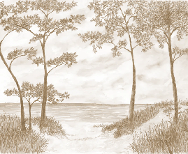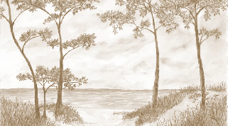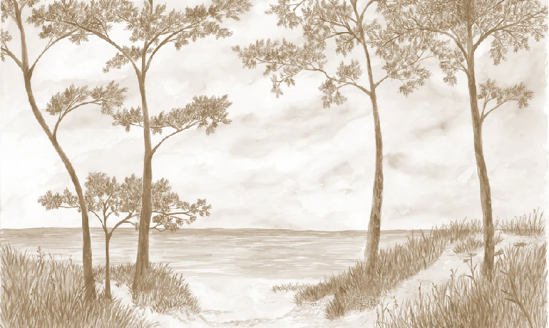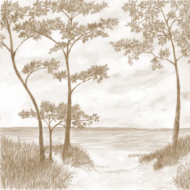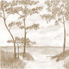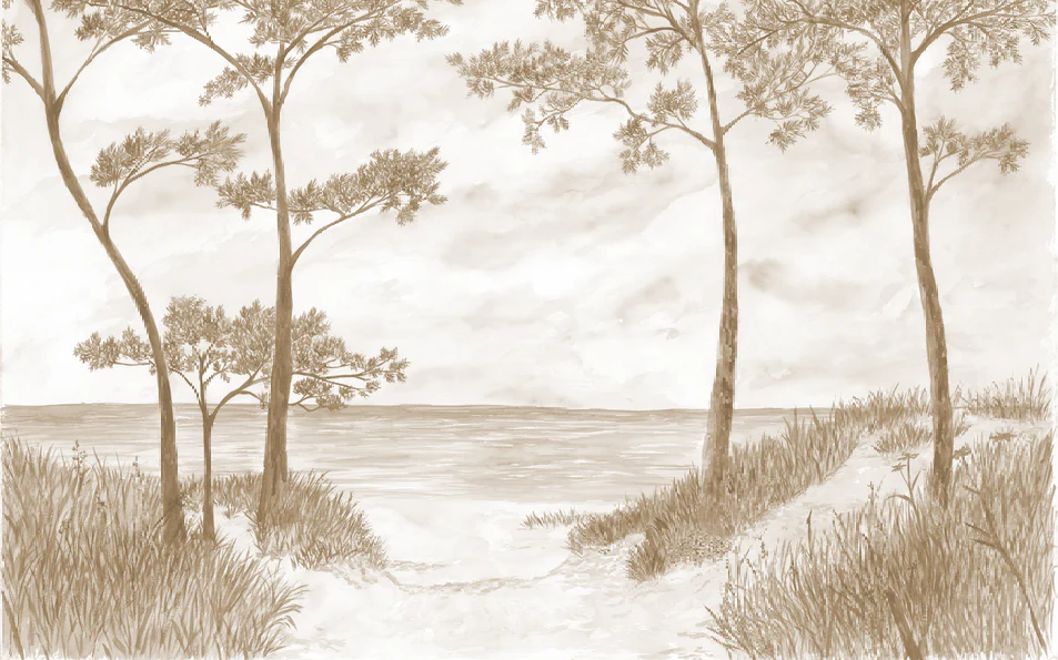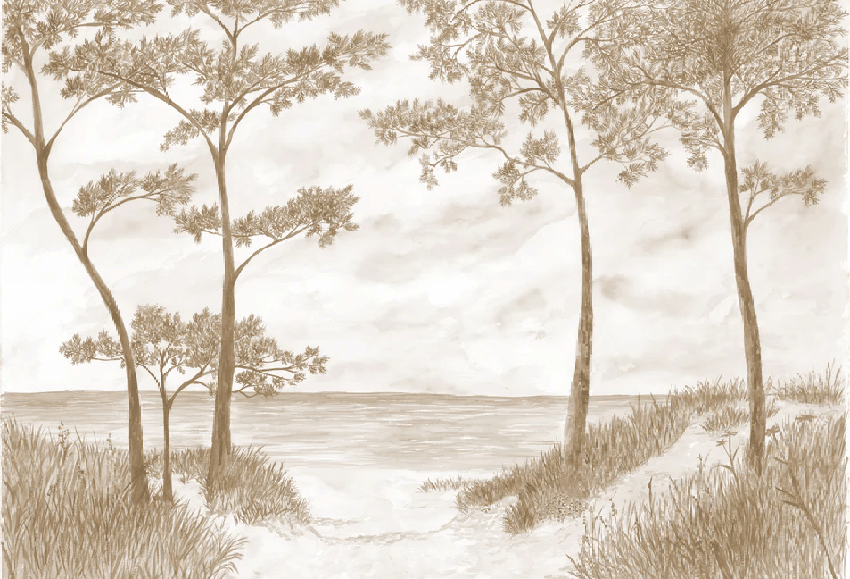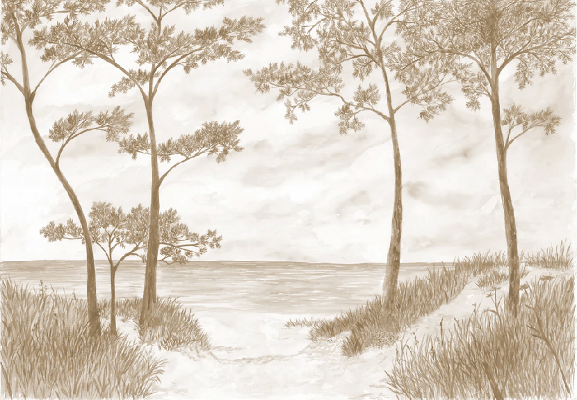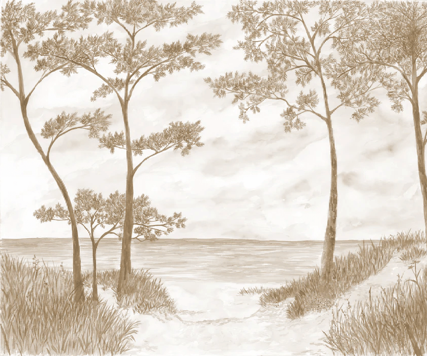 Tapete „Küstenkiefern und Dünen“ – Sepia