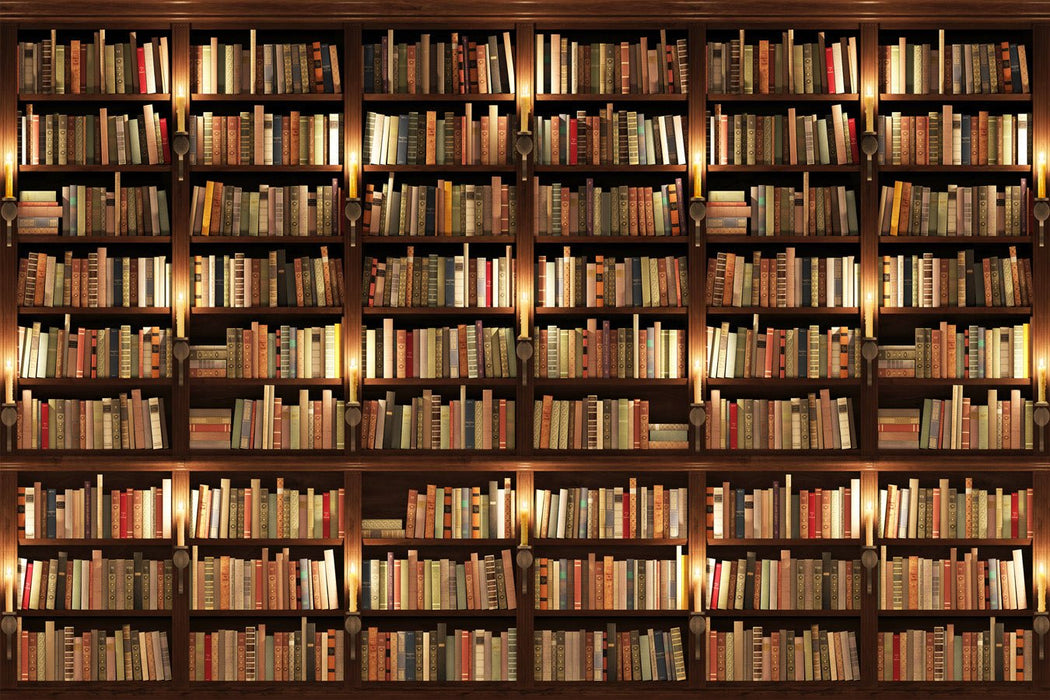 Fallen Sie auf diese authentische Bibliothek der Trompete, völlig realistisch. Bücher, Regale, Kerzen, C.Die Tapete wird Sie überraschen, eine Wand, die Ihre Gäste beeindrucken. Erstellen Sie einfach ein einzigartiges Interieur mit unserem Hintergrundbild für Ihre MessungenS. Effekt Trompe l'oeil garantiert!