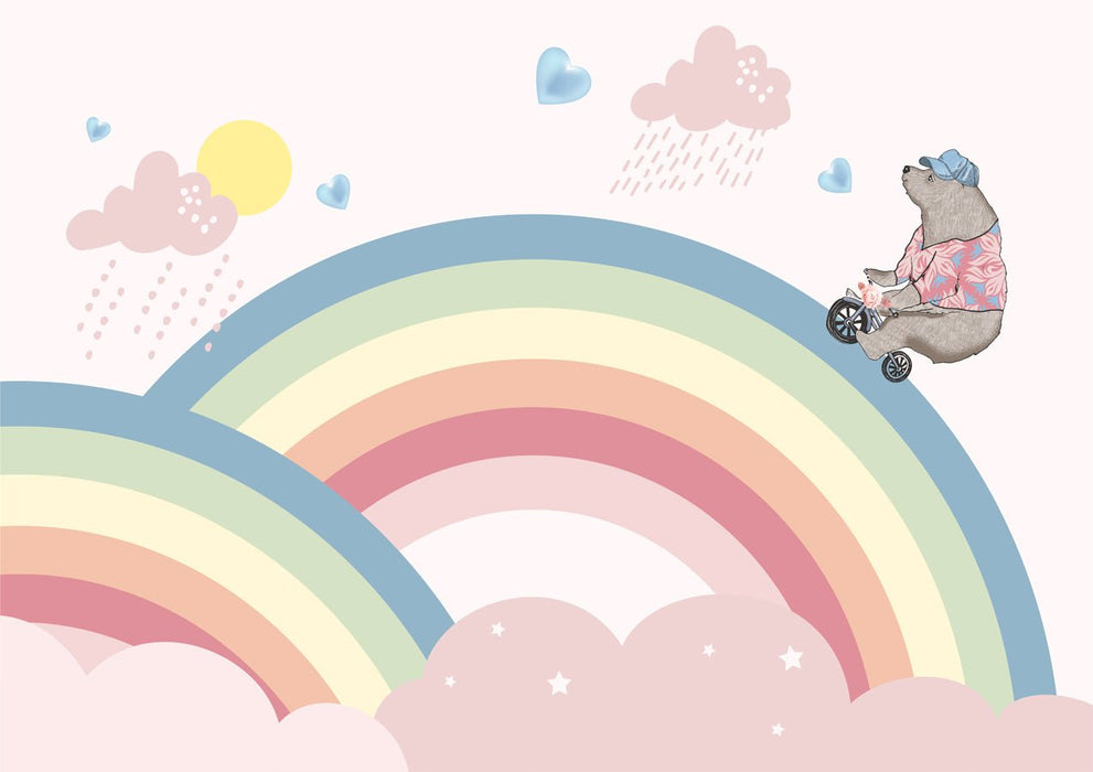 Lassen Sie sich von unserer Fototapete Französisch Kind Regenbogen für ein Kinderzimmer mit einem schönen Regenbogen illustriert. Diese Tapete für Kinderzimmer ist auch ideal für ein Babyzimmer oder ein Spielzimmer. Diese eher mädchenhafte, farbenfrohe Wanddekoration erzählt süße Geschichten und bringt Zärtlichkeit in die Atmosphäre Ihres Zimmers. Entscheiden Sie sich für eine maßgefertigte Tapete für das Zimmer Ihres Babys. Eine umweltfreundliche und umweltbewusste Tapete.