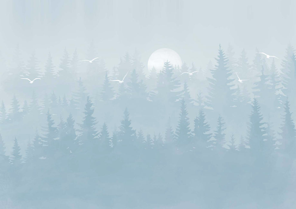 Tapete Kinderzimmer Wald skandinavisch blau moonlight