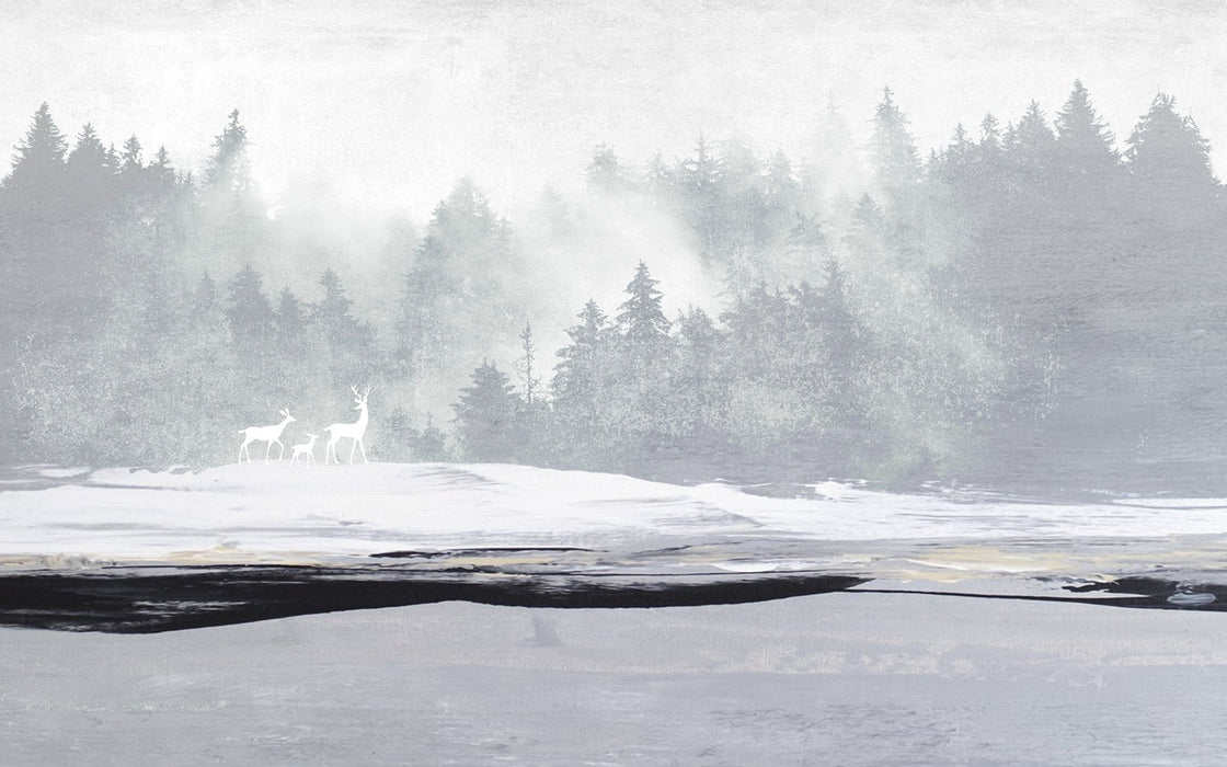 Entdecken Sie unsere Fototapete Nebelwald und Hirsche, die Sie an den Rand eines verschneiten Waldes führt. Diese Naturtapete im abstrakten Stil ist ideal für ein Schlafzimmer, ein Wohnzimmer oder ein Büro. Eine maßgeschneiderte Wanddekoration, die Licht und Frische in Ihren Raum bringt. Ein einziges künstlerisches Wandbild, das Ihr Zuhause verwandelt und einzigartig macht. Eine trendige Fototapete, die Ihre Augen begeistern wird. Wählen Sie eine maßgefertigte Panorama-Tapete, um den Blick auf sich zu ziehen.
