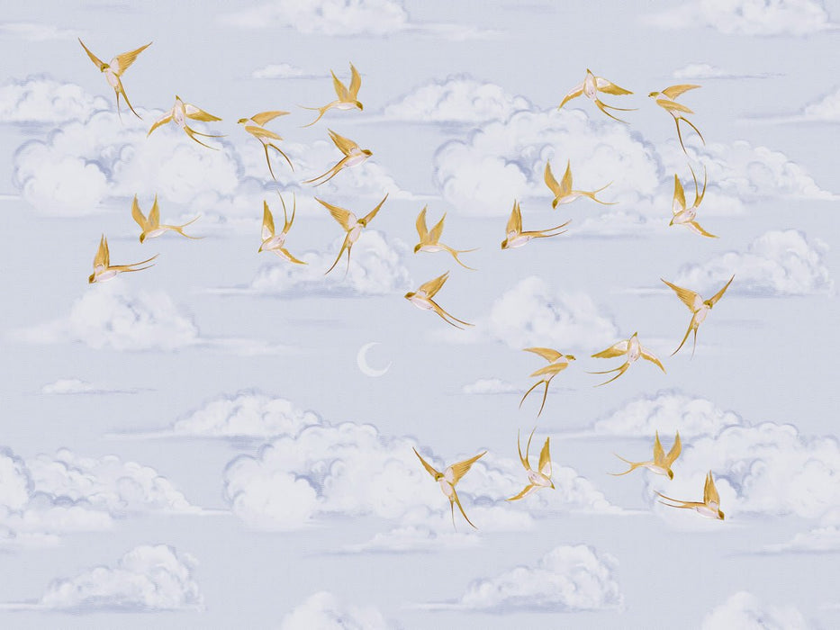 Poesie und Magie sind mit der Fototapete Poetische Wolke Vogel Gold vorprogrammiert ! Wenn Sie einen eleganten und subtilen Stil schaffen wollen, ist diese romantische Wandkreation perfekt. Ob im Wohnzimmer, im Schlafzimmer (am Kopfende des Bettes) oder im Eingangsbereich, in einem Teehaus oder in einem Hotelzimmer, diese Panorama-Tapete wird sowohl Helligkeit als auch einen raffinierten Touch in Ihr Zuhause bringen. Schaffen Sie sich mit unserer maßgefertigten Panorama-Tapete ein traumhaftes Zuhause.