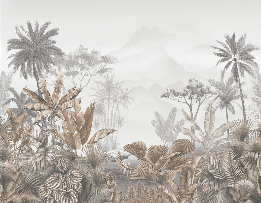 Tauchen Sie mit unserer trendigen Fototapete Tropical Sepia in das Herz eines tropischen Dschungels ein. Diese maßgefertigte Wandtapete wird Ihr Zuhause verschönern. Eine exotische Note und eine Einladung zur Flucht, diese Panorama-Tapete wird ihren Platz in allen Räumen des Hauses finden. Sie ist ideal für Geschäftsräume wie Hotellobbys, Gästezimmer und Restaurants. Kaufen Sie eine maßgefertigte Panorama-Tapete, um Ihr Zuhause zu verwandeln, eine beeindruckende Wanddekoration, die einfach anzubringen ist.