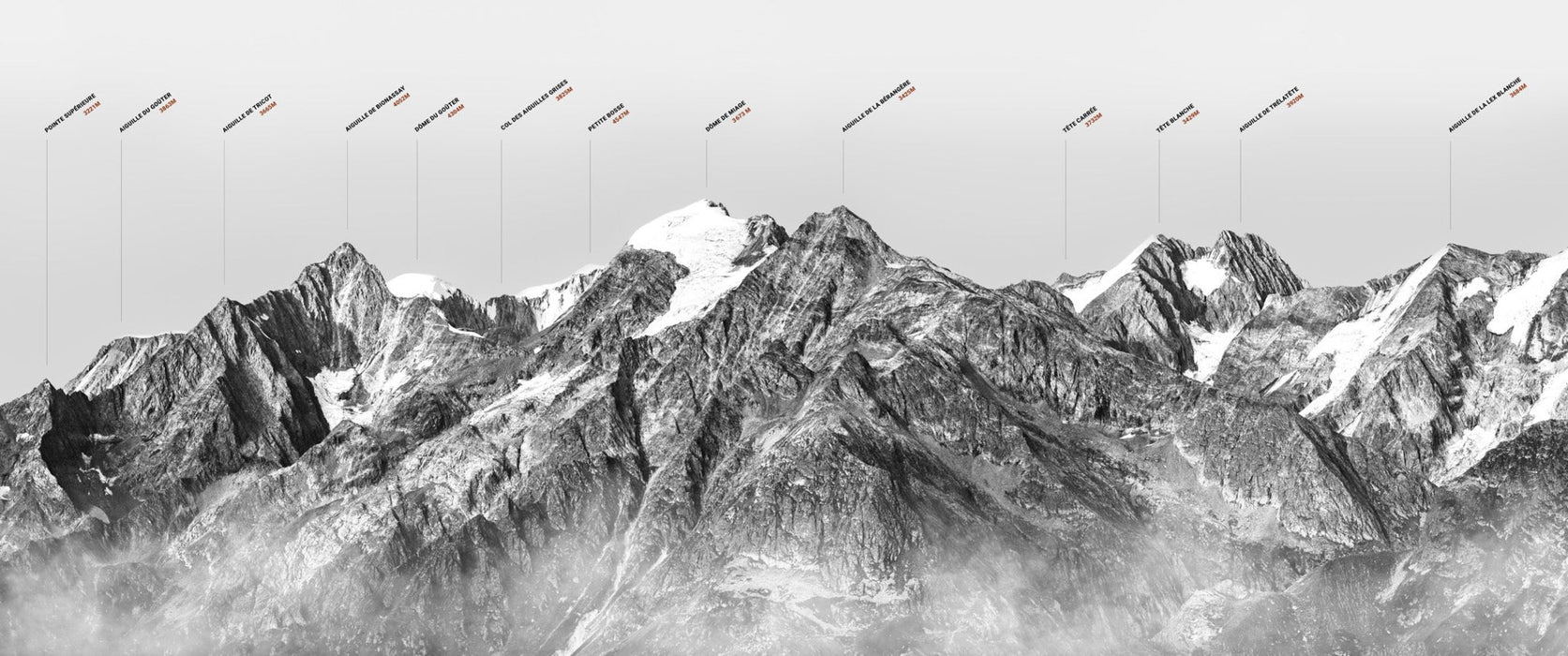 Steigen Sie hoch hinaus mit unserer inspirierenden und zugleich entrückenden Fototapete Berg Kuppel Alpin. Eine Fototapete, die Ihnen einen außergewöhnlichen Blick auf die berühmteste Bergkette Mont Blanc bietet.