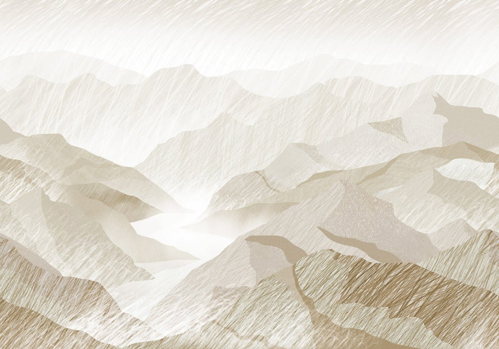 Entdecken Sie unsere Fototapete Illustration Berge Sepia, eine Panorama-Tapete Berge, die Innenräume veredelt. Diese Sepia-Tapete mit ihren warmen und zarten Farbtönen lässt Sie schnell auf eine warme und sanfte Atmosphäre treffen. Ihr Motiv, das mit Strichen gezeichnet ist, nimmt uns mit auf eine Reise. Diese Tapete passt in alle Räume Ihres Hauses und kann auch als Kopfteil des Bettes dienen.