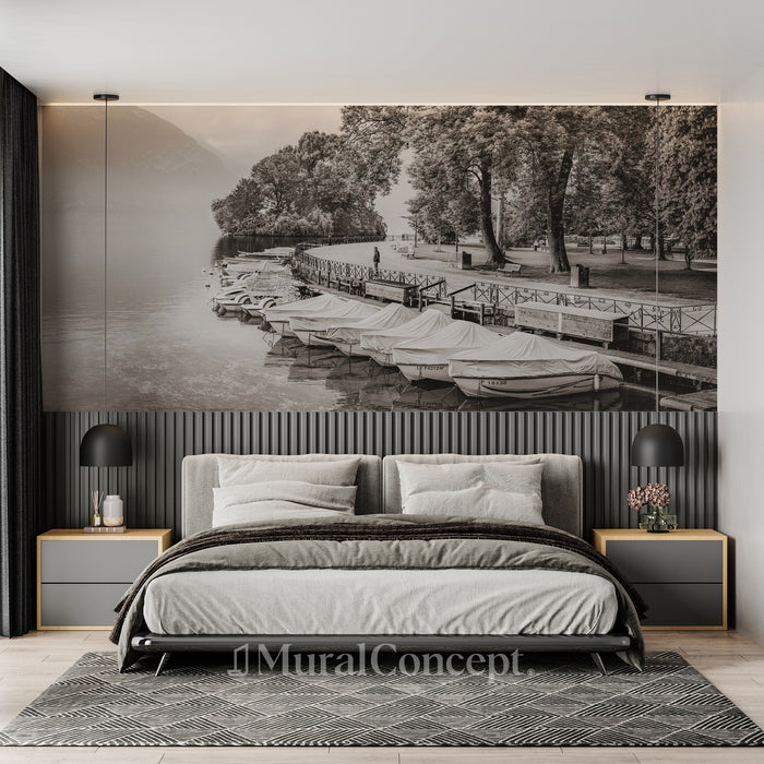 Tapete Panorama Betrachtung Lac d'Annecy Sepia