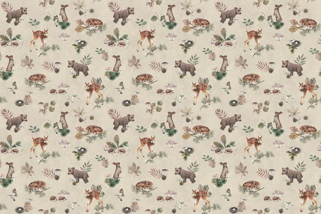 Les teintes naturelles et douces se déploient sur un fond beige clair lumineux qui apporte chaleur et équilibre à la pièce. Ce papier peint animaux de la forêt est idéal pour une chambre de bébé, une chambre d’enfant ou une salle de jeux, favorisant le calme, les moments de repos et les histoires du soir.