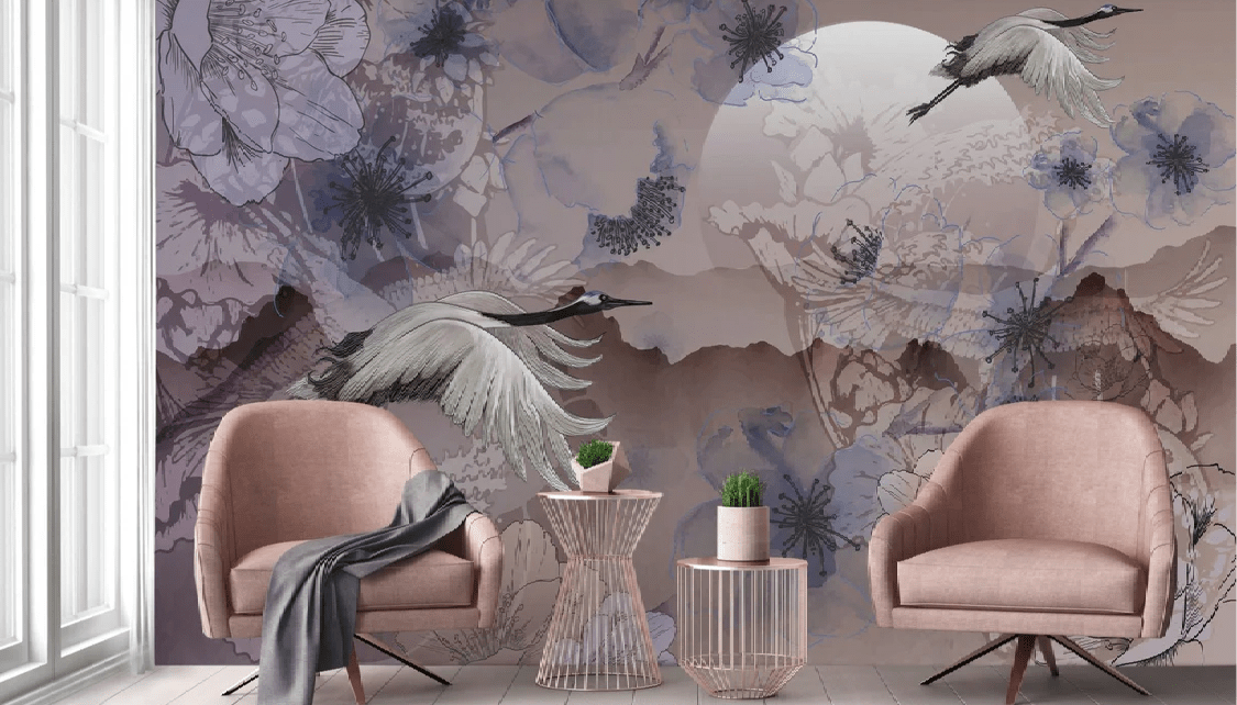 Papier peint grues japonaises