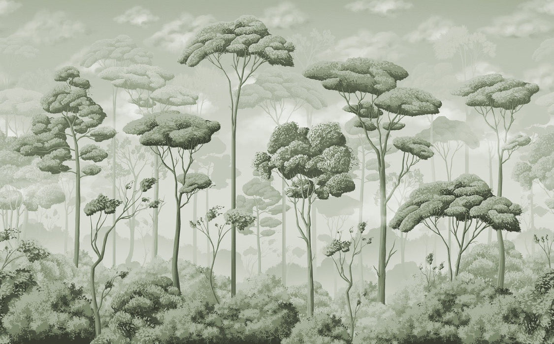 Panoramic pinewood voluptuous green wallpaper