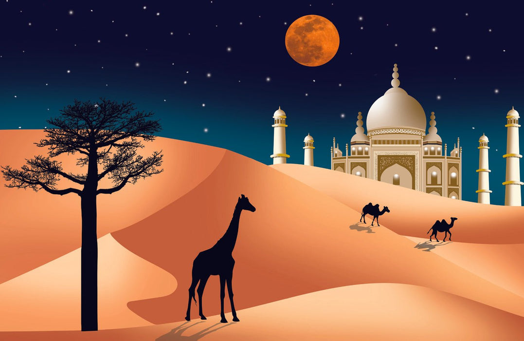 This thousand-and-one-night wall mural in the Sahara will mesmerize you, and help you create an atmosphere conducive to relaxation. Give your home a trendy, elegant and unique look with this artistic panoramic wallpaper that's sure to wow your friends! This panoramic wallpaper will sublimate any room in your home, making it the main feature of your decor. Easily create a dream interior with our wall tapestry made to the dimensions of your wall.