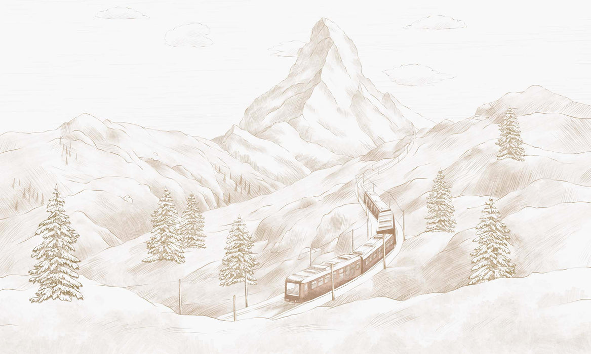 Do you recognize this pyramid-shaped mountain, this rocky tooth that pierces the sky? Discover the timeless elegance of Mont Cervin, captured to perfection in our panoramic Mont Cervin sepia wallpaper drawn in fine pencil. Every detail of this majestic mountain in the Swiss Alps has been meticulously reproduced by our talented artists, creating a work of wall art of incomparable beauty.