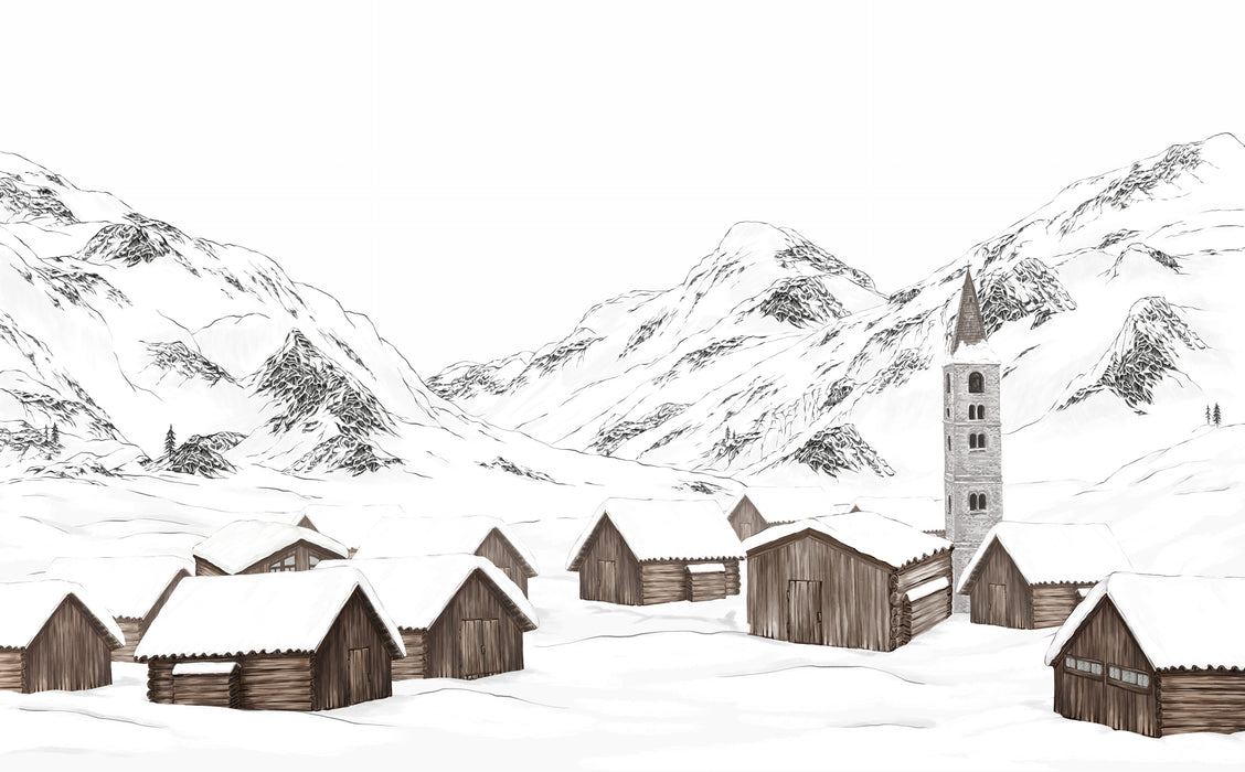 Bring the timeless charm of the mountains into your home with this Val d'Isère wallpaper, an artistic evocation of the famous Alpine village. This design features quaint little chalets, the iconic church at the heart of the village, and elements that embody themountain spirit. The meticulous details and warm atmosphere of this wallpaper recreate the authenticity of Alpine landscapes.
