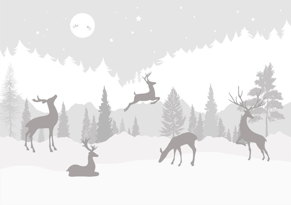 This Scandinavian deer dance wallpaper is ideal for softening the mood in your child's bedroom. Decorate a child's bedroom or nursery with panoramic wallpaper. The pastel colors are endearing, and your child will be able to get away from it all as he contemplates his wall decor. Buy panoramic children's wallpaper now. This eco-friendly wallpaper is made to measure. This wallpaper is printed without solvents.