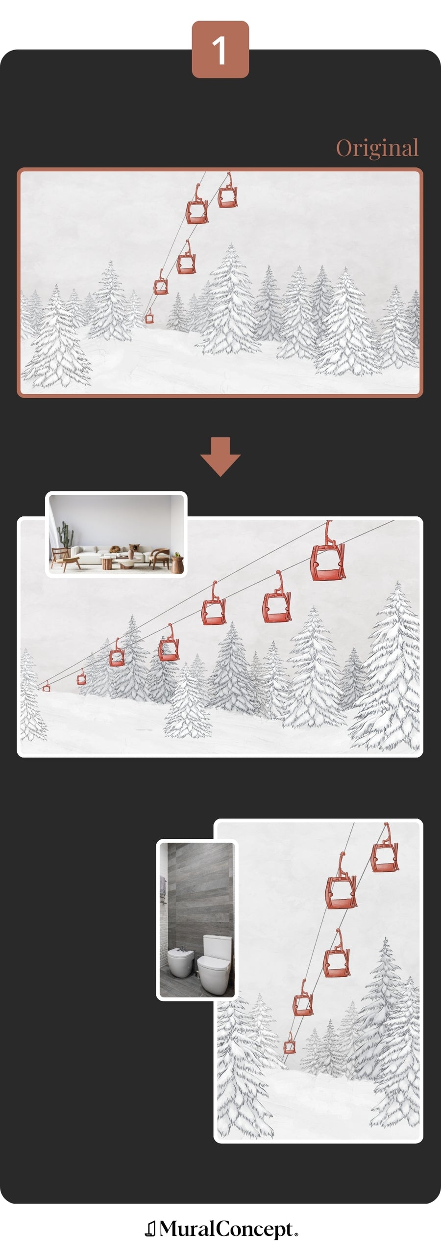 Measure the greater height and width of your wall, and enter the values in centimeters into the calculator. With the graphic customization option, the design studio will adapt your decor to the dimensions of your wall, for a 100% made-to-measure result.