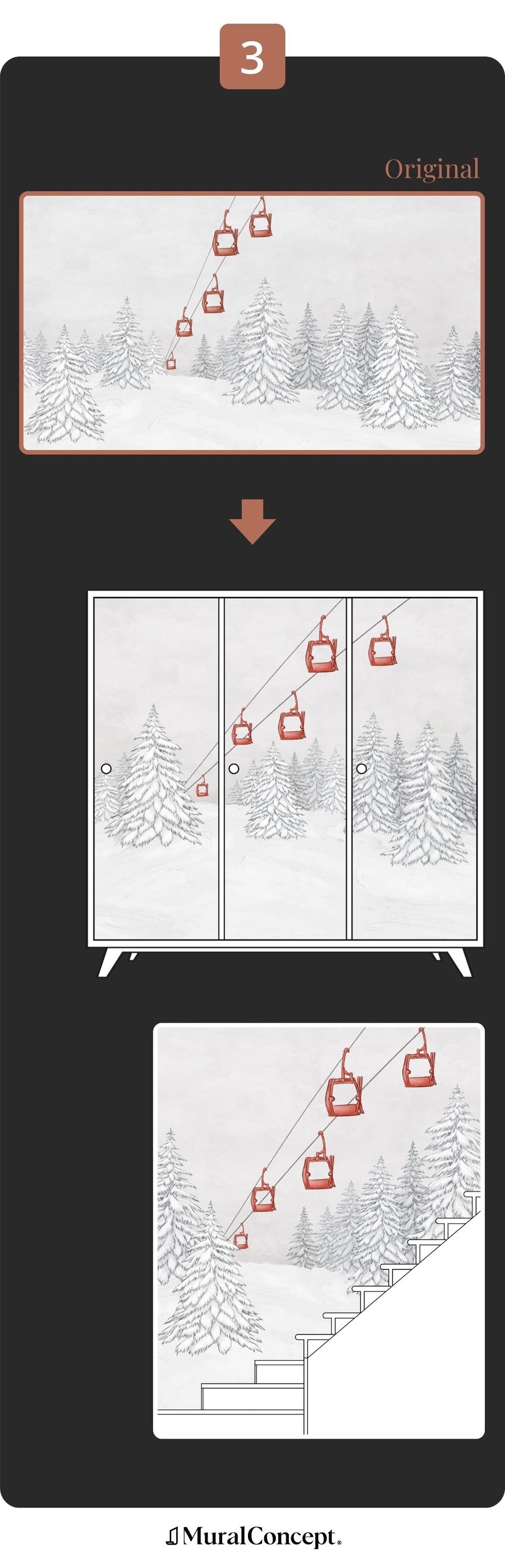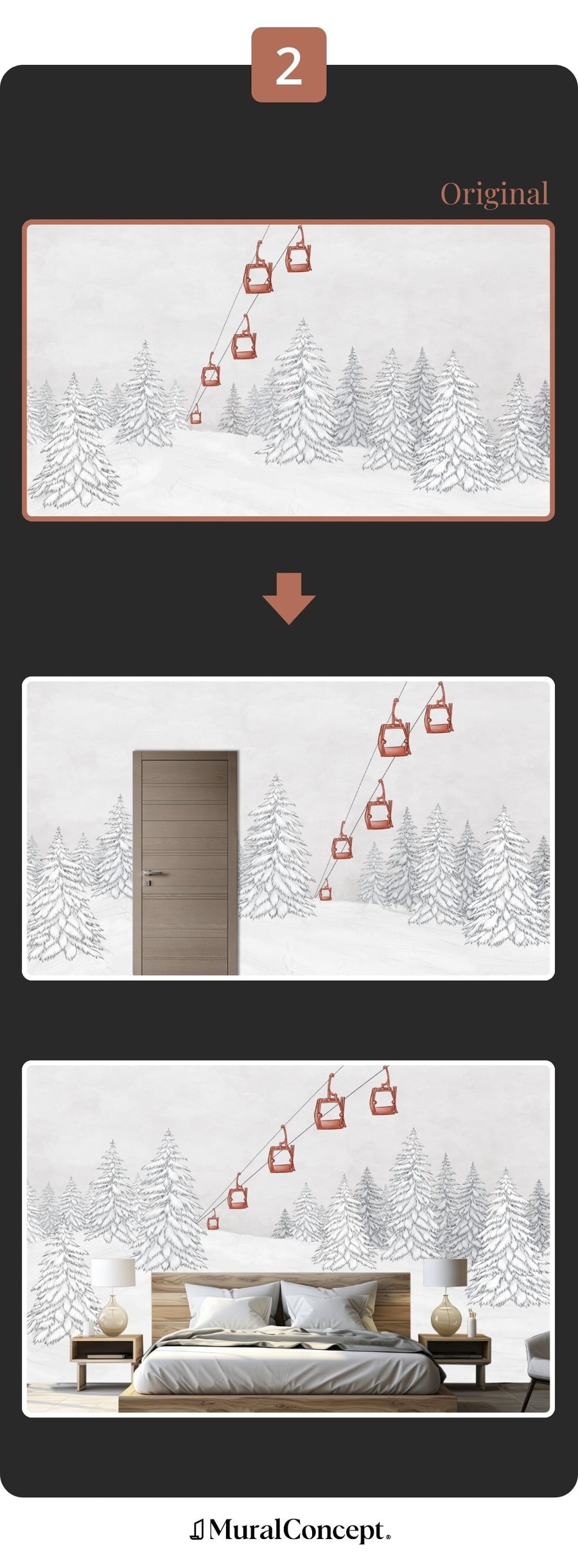 Our design studio canmodify the image to fit your layout constraints : headboard, attic, stairwell, etc.