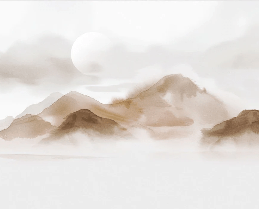 Carta da parati montagne velate – Bagliore seppia