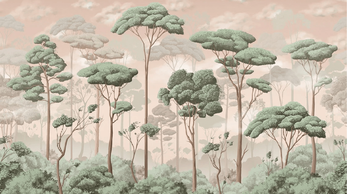 Carta da parati panoramica in pineta con gelsomino voluttuoso L266cm x H253cm
