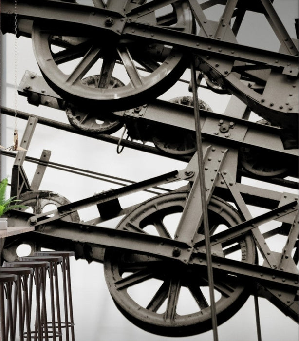 La nostra carta da parati in stile industriale è la scelta perfetta per gli appassionati di arredamento moderno e industriale. Raffigura il meccanismo di un impianto di risalita, per un tocco crudo e autentico.