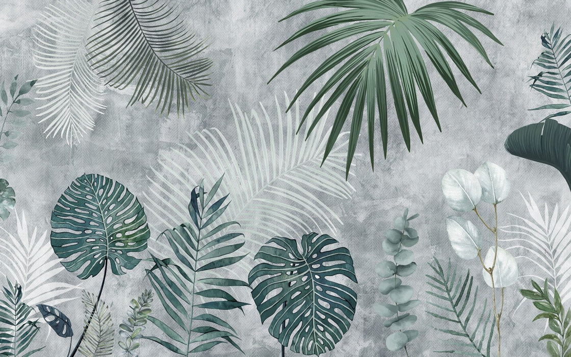 Carta da parati monocromatica per il bagno Biophilic Jungle