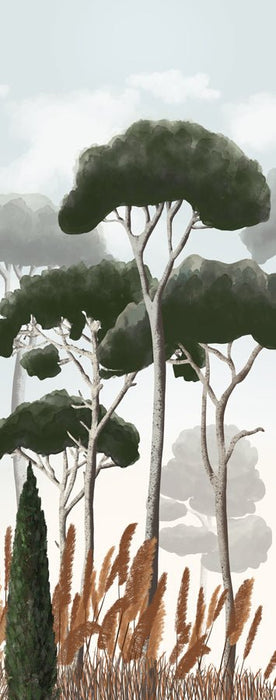 Questa carta da parati per toilette con cipressi, pini ed erba della pampa vi farà immergere nel cuore della natura e creerà un ambiente unico. Un effetto murale che stupirà i vostri amici! Questa carta da parati trompe l'oeil su misura aprirà il vostro bagno al mondo esterno. Una decorazione rilassante. Create facilmente un interno da sogno con la nostra carta da parati realizzata in base alle dimensioni della vostra parete.