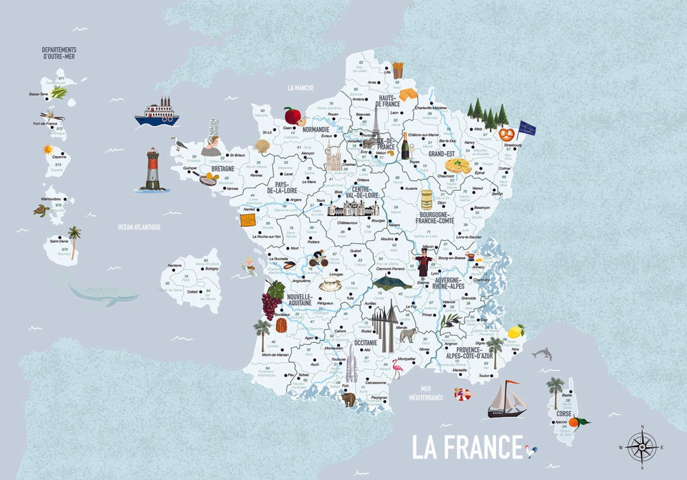 Scoprite la nostra carta da parati blu della Francia per bambini. Questa mappa della Francia è un modo semplice per far conoscere la geografia della Francia a grandi e piccini. Questo sfondo illustrato del mappamondo permette di scoprire le specialità delle regioni o dei dipartimenti. Una carta da parati divertente, facile da imparare e splendidamente illustrata che mette in risalto tutte le ricchezze della Francia: monumenti, cibo, montagne, fiumi, dipartimenti e mare... Come non innamorarsi di questo murale con carta di Francia? Questa decorazione panoramica ha uno stile morbido e scandinavo ed è disponibile in tre colori. È ideale per creare un'atmosfera rilassante per addormentarsi, ma è anche pensato per facilitare l'apprendimento e ispirare tutta la famiglia a scoprire i quattro angoli della Francia. È facile creare un arredamento unico con questa carta da parati su misura! Siamo sicuri che vi piacerà. Tutte le nostre carte da parati sono Eco-friendly, Kids Friendly. Sono rispettose dell'ambiente e degli interni. Appendete questa carta da parati panoramica Carte de France nella cameretta, nella stanza dei giochi o nell'aula del vostro bambino! I bambini rimarranno a bocca aperta.