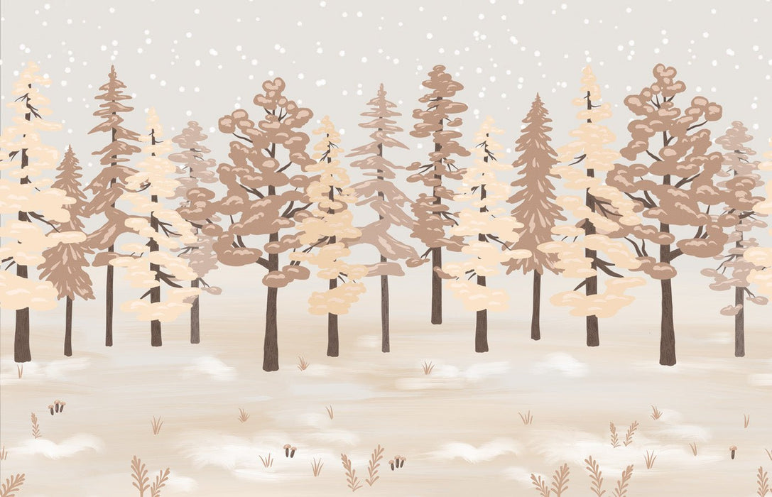 Abete innevato, colori pastello, questa carta da parati per bambini con acquerello fiabesco ci porta in un mondo di sogni. Questa carta da parati, dipinta come un murale, è artistica, magica e fiabesca. I colori di questo arazzo panoramico sono rilassanti. Questa decorazione murale è morbida, tenera ed evasiva.