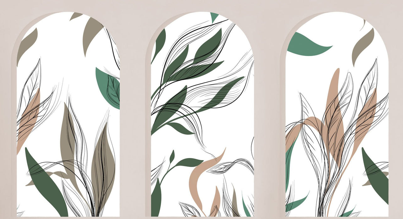 Scoprite l'eleganza senza tempo della carta da parati "Architectural Flora", una fusione magistrale tra la sofisticata architettura degli archi e la rigogliosa bellezza della flora. I delicati archi, disegnati con precisione artistica, conferiscono un'incantevole profondità al vostro spazio, creando un'illusione sottile ma accattivante di portali verso un mondo di eleganza senza tempo.