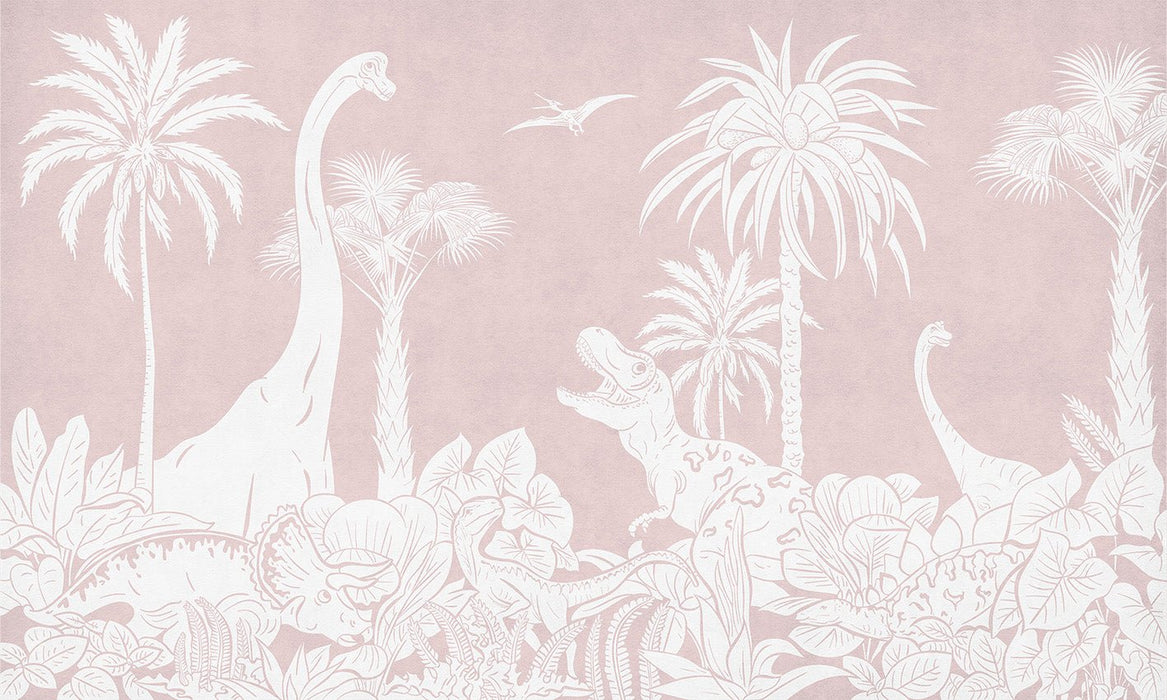Carta da parati monocromatica rosa dinos