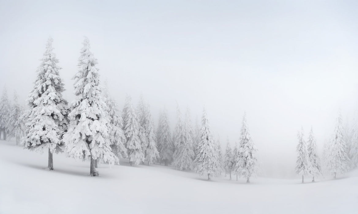 Regalate alle vostre pareti una ventata di aria fresca con questa carta da parati panoramica con un bosco innevato. Maestosi abeti ricoperti di neve si stagliano in una morbida nebbia invernale, creando un'atmosfera scandinava elegante e rilassante.