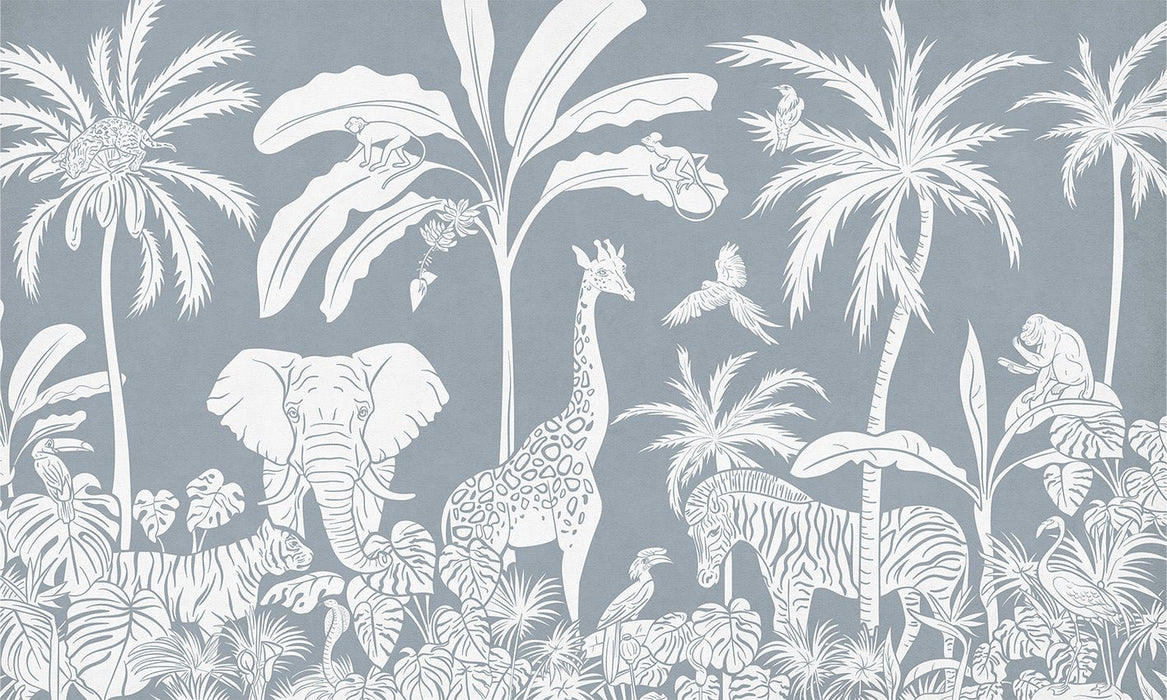 Carta da parati per bambini Safari monocromatico blu