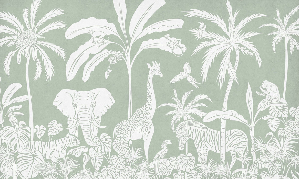 La carta da parati per bambini monocromatica verde safari è una decorazione murale morbida e toccante. Perfetta per decorare la cameretta del bambino o della bambina, questa carta da parati per bambini verde pastello fa scoprire ai bambini la bellezza degli animali della savana. Il suo colore verde addolcisce l'atmosfera per tranquillizzare il bambino e facilitarne l'addormentamento. Scoprite il mondo degli animali della savana con la vostra famiglia grazie a una graziosa carta da parati panoramica pensata per il vostro bambino. Grazie alla nuova decorazione murale per bambini, potrete raccontare bellissime storie illustrate! Giraffa, elefante, zebra, uccelli esotici: fate un safari nel mondo infantile della savana.