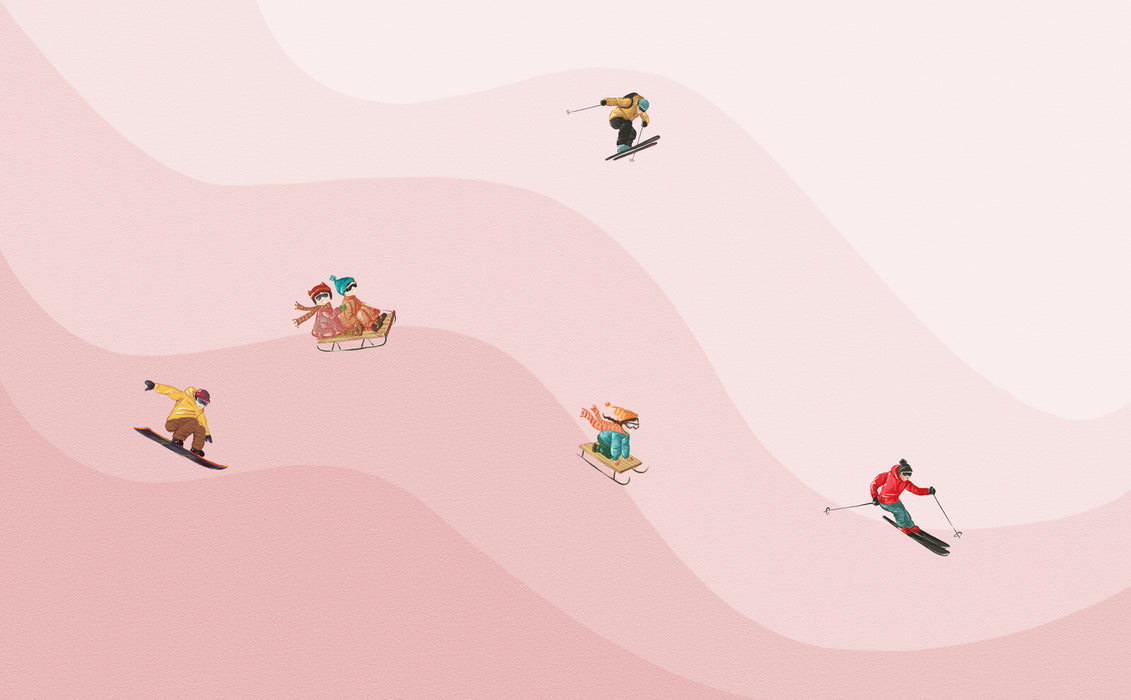 Carta da parati per bambini sciatori rosa