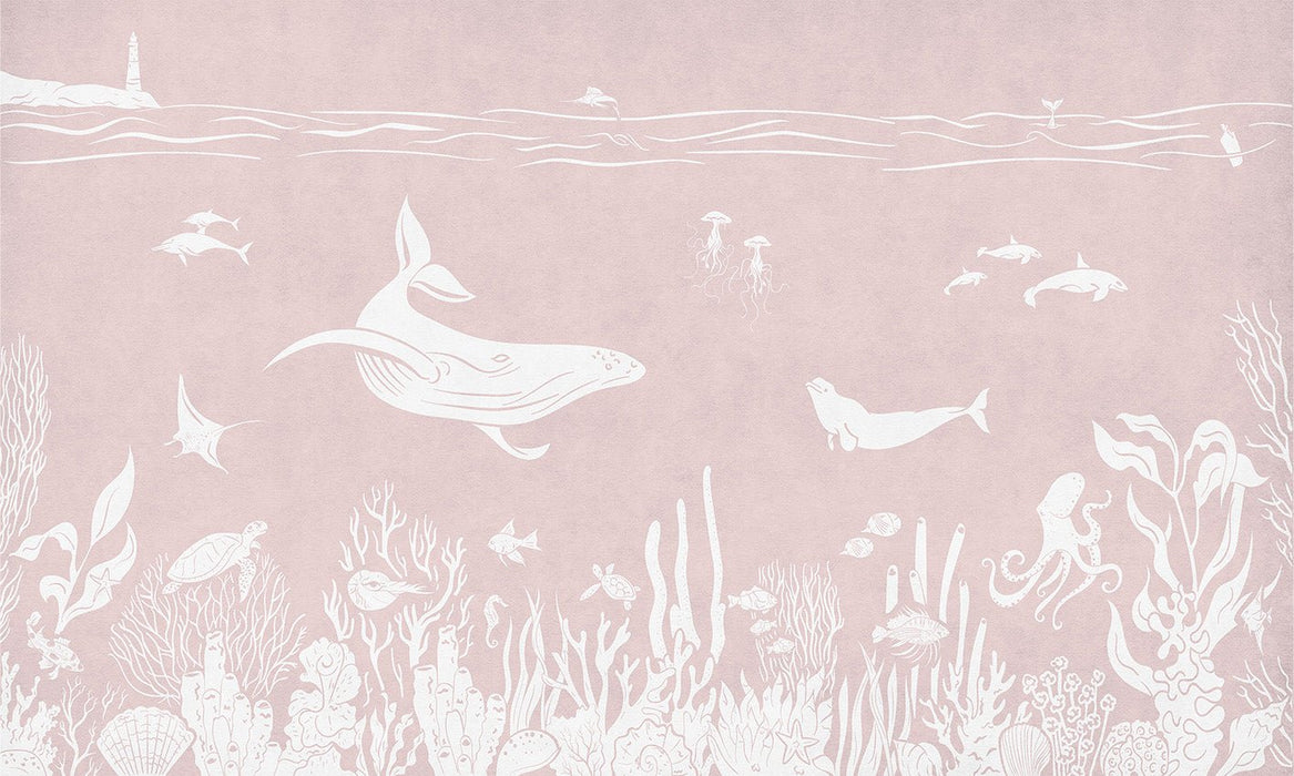 La cameretta del vostro bambino o della vostra bambina si trasformerà grazie alla nostra carta da parati rosa acquatico. Questa carta da parati monocromatica rosa pastello addolcisce e rasserena l'atmosfera della cameretta del bambino. Ideale per sostenere e sviluppare la curiosità del bambino, questa carta da parati per bambini con animali marini racconta storie tenere. Immergiamoci insieme tra delfini, balene, pesci e coralli per stupirci e imparare divertendoci. Il rosa di questa carta da parati è tenue.