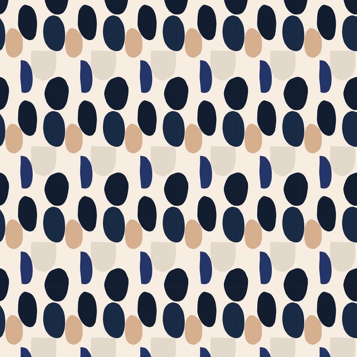 Applicate un motivo rotondo retrò alle vostre pareti per un tocco retrò contemporaneo con questa carta da parati geometrica. I suoi motivi rotondi, nei colori blu-nero, blu petrolio, beige e terracotta, variano tra cerchi pieni e mezzi cerchi, creando un design dinamico e moderno. Ideale per il soggiorno o la camera da letto, questa carta da parati astratta aggiunge profondità e carattere a qualsiasi ambiente, adattandosi a diversi stili di arredamento.