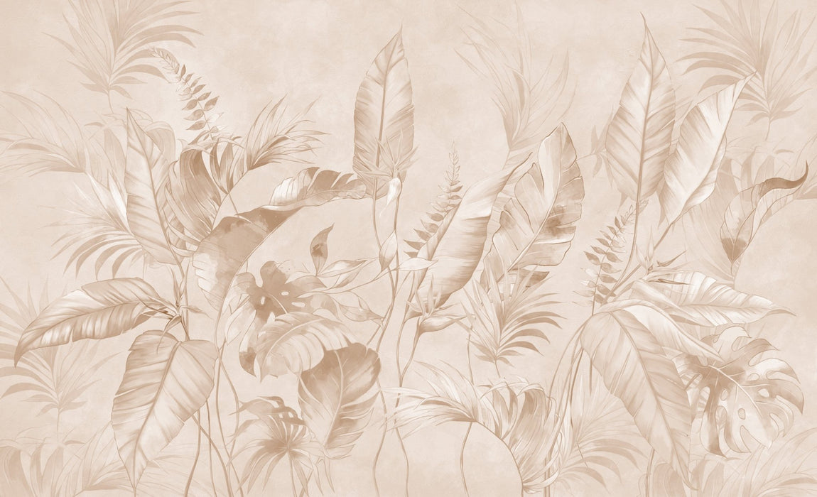 • Tropical chic: motivi ispirati alla giungla tropicale in una palette di beige cipria.