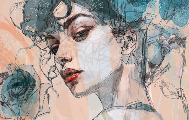 Questa carta da parati artistica presenta il ritratto di una donna in un moderno stile graffiti, che unisce finezza e forza espressiva. Con colori vibranti blu e rosa, la carta da parati artistica raffigura un volto delicato con uno sguardo suadente, dove l'emozione traspare dalle linee sottili e meticolose. Quest'opera grafica unisce seduzione, persuasione e dolcezza, creando un'atmosfera unica e accattivante. Un elegante fiore, discretamente integrato nel disegno, simboleggia la bellezza e la femminilità, aggiungendo un tocco di raffinatezza a quest'opera. Questa carta da parati di tendenza è perfetta per chi è alla ricerca di una carta da parati eccezionale, che unisce arte e design d'interni per un tocco di originalità e stile in qualsiasi spazio.