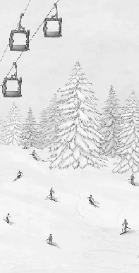 Carta da parati con sciatori colorati su cabinovia