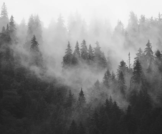 Papier peint forêt brumeuse noir et blanc