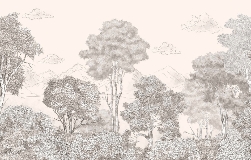 Papier peint panoramique Forêts et Monts Crayonnés Beige