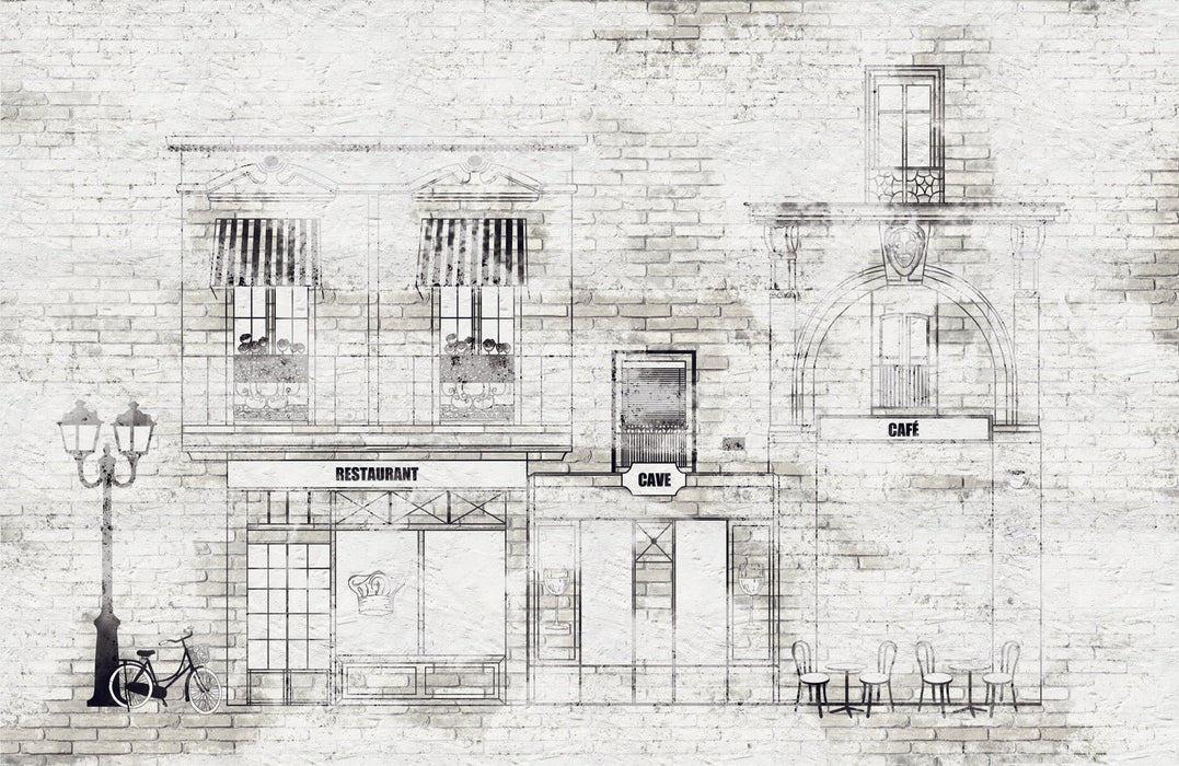 Papier peint bistrot vintage façade parisienne