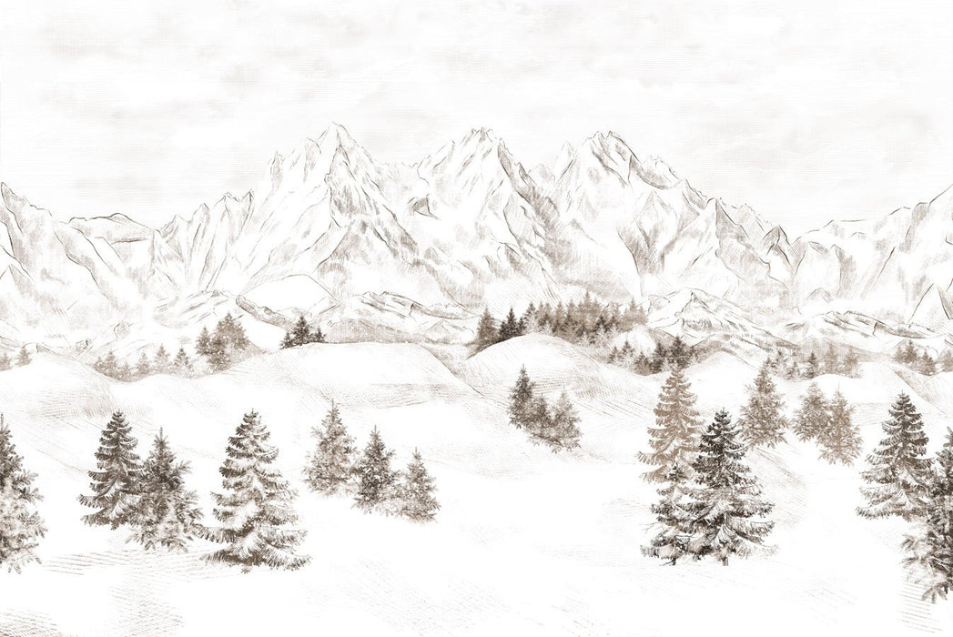 De la neige, des sapins un décor mural féérique qui va sublimer votre intérieur. Cette création murale vous invite dans une atmosphère paisible et sereine. Créer une ambiance inspirante et reposante avec notre papier peint réalisé sur mesure, une couleur sépia pour réchauffer votre intérieur.