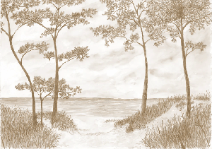 Papier peint Pins maritimes et dunes - Sépia